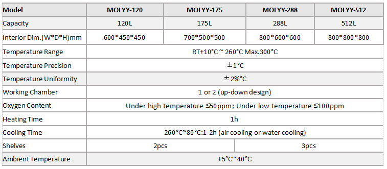 Anaerobic oven is mainly applied in aerospace, petrochemical, military, ship, electronics, communications and other scientific research and production units, it is used to do BPO/PI/BCB curing, and IC (wafer, CMOS,Bumping,TSV,MENS, fingerprint identification), FPD, high-precision electronic components, electronic ceramic materials dust-free drying, electronic products, materials, components and other high-temperature clean environment drying and aging test.